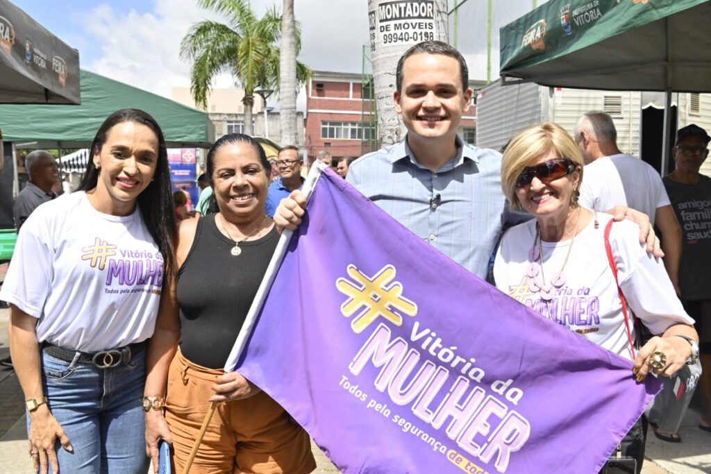 A ação foi realizada por equipes da Gerência de Proteção à Mulher, vinculada à Secretaria Municipal de Cidadania, Direitos Humanos e Trabalho (Semcid), e contou com a presença do prefeito de Vitória, Lorenzo Pazolini, que acompanhou as atividades e reforçou o compromisso da gestão municipal com o enfrentamento à violência contra a mulher. “Estamos na tradicional feira de Itararé com uma ação muito importante que é o combate à violência doméstica, a conscientização, a proteção às mulheres. Vitória é a capital de todos os capixapas e a cidade que mais protege as mulheres do Brasil. Estamos há mais de 570 dias sem feminicídio”, ressaltou.