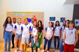 Victoria Santana Fiorot Miranda, confeccionou uma das telas expostas e ela e os demais estudantes recepcionaram os visitantes.