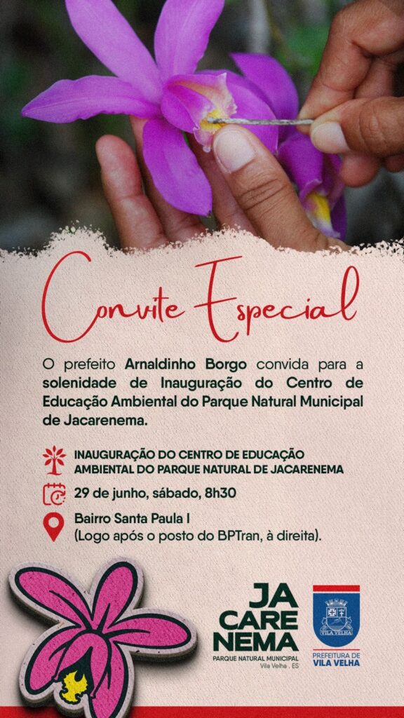 Mais um dia histórico para o meio ambiente de Vila Velha. Neste sábado (29), às 8h30m, a Prefeitura vai inaugurar o Centro de Educação Ambiental do Parque Natural Municipal de Jacarenema, localizado entre os bairros Barra do Jucu e Santa Paula I, às margens da Rodovia do Sol.